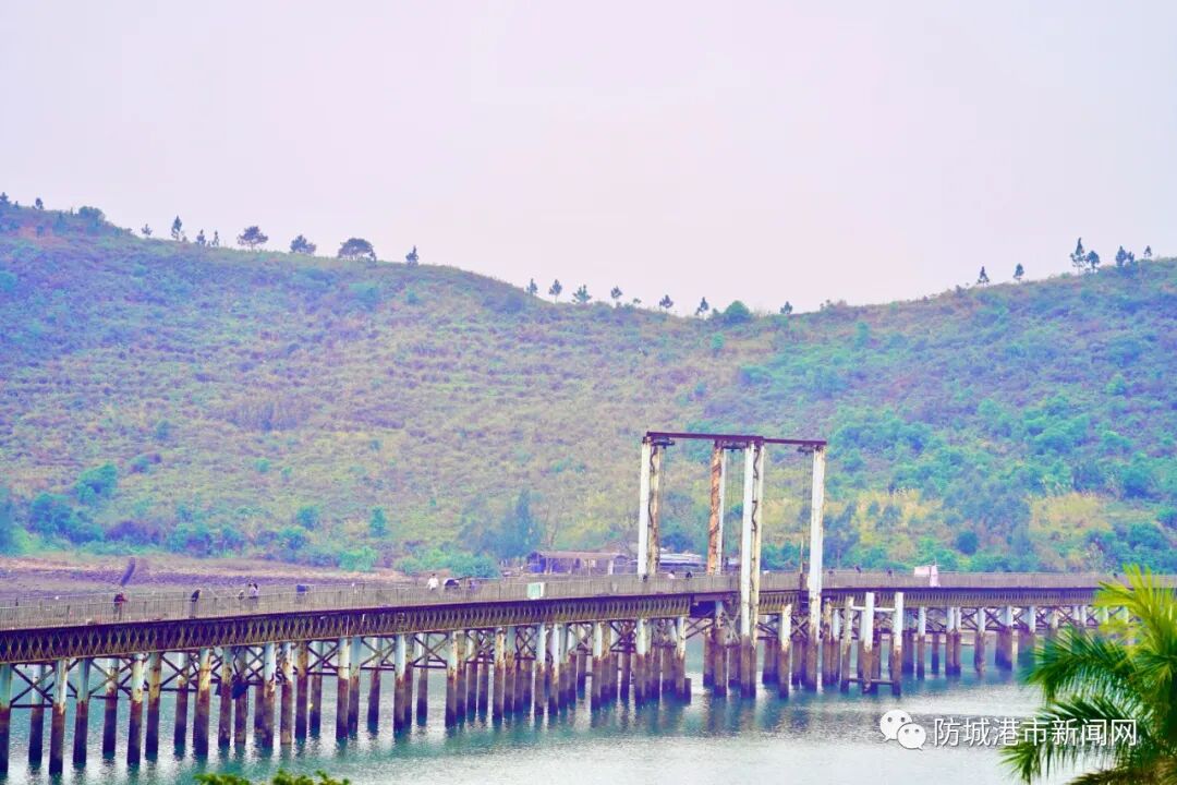 远望月亮岛,山体被树木点缀得绿意盎然。
